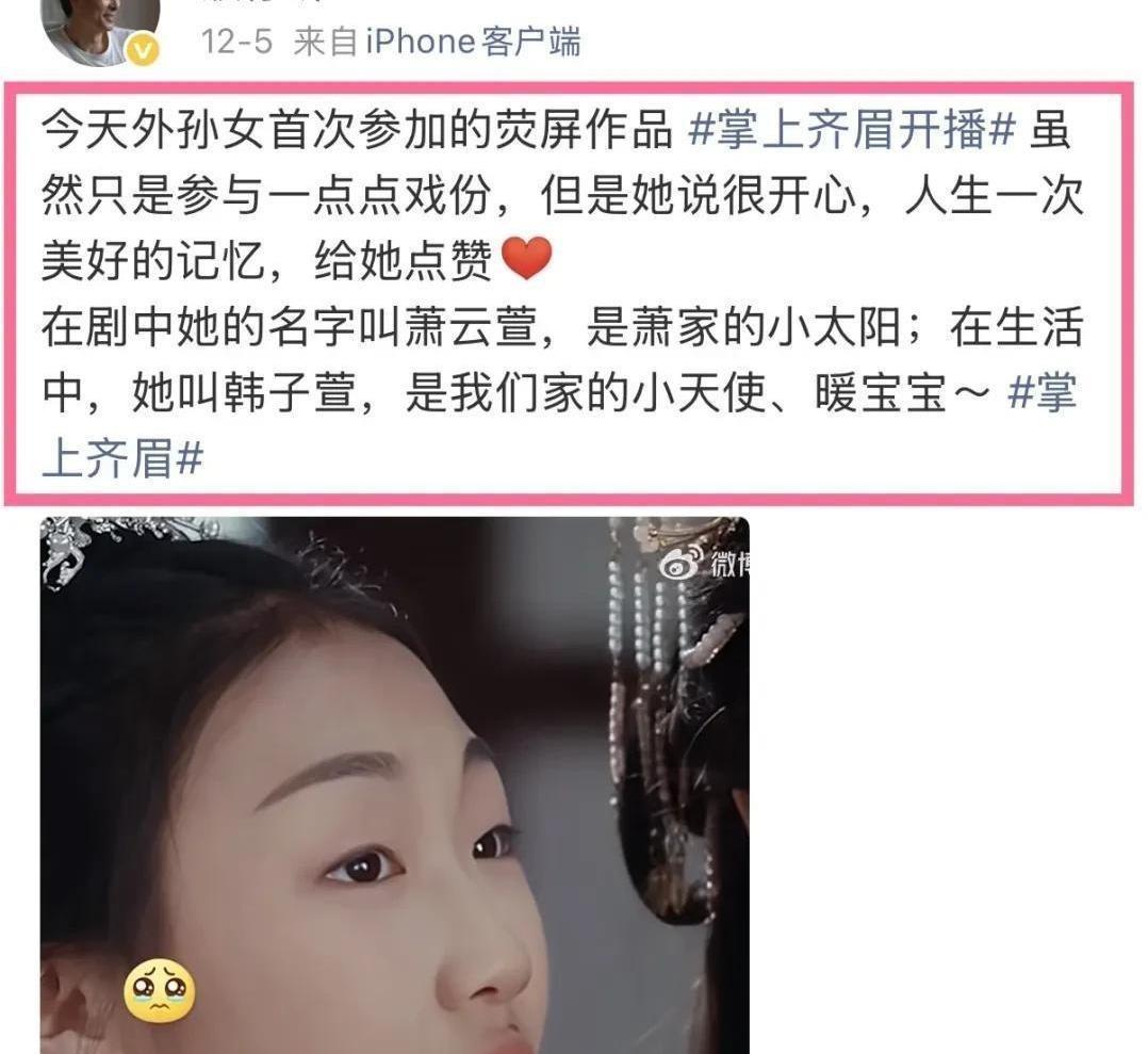 有人曾说,娱乐圈像个盛大的家庭聚会,到处可见熟稔的面孔和名字,只是如今,这份“亲切”越发变得复杂。最近,72岁的濮存昕在社交媒体接连发文,支持自己11岁的孙女韩子宣出演短剧。这原本像一场寻常的家长晒娃,却意外点燃评论区的火药桶。网友们的质问与嘲弄几乎是一瞬间蔓延,“又一个靠关系的星三代”“内娱彻底没救了”等声音,让整个事件不再只是祖孙亲情的分享。